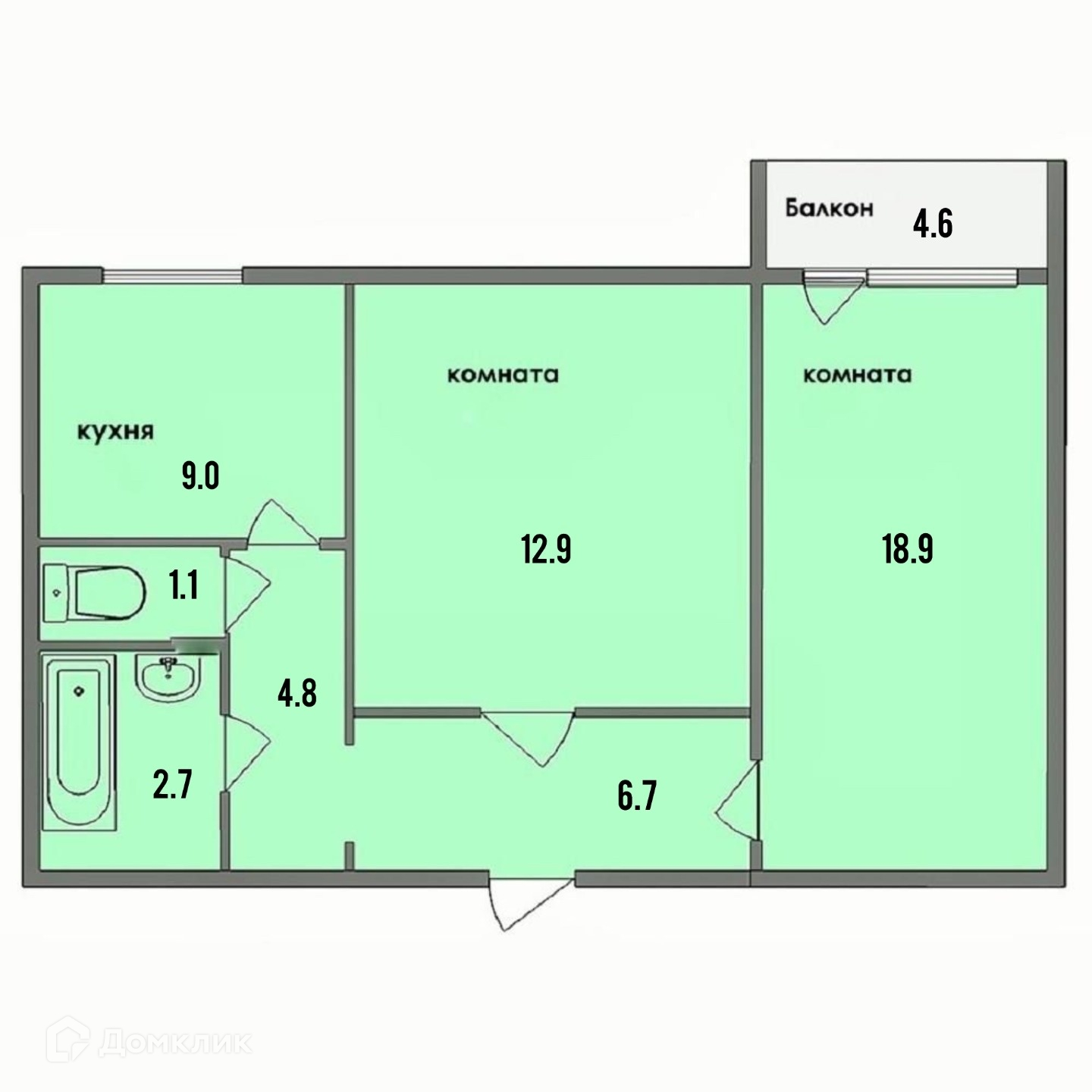 Общая площадь 56.3 м2