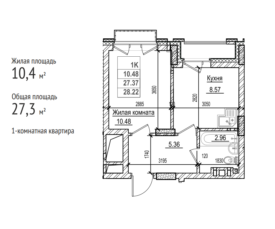 Общая площадь 28.22 м2