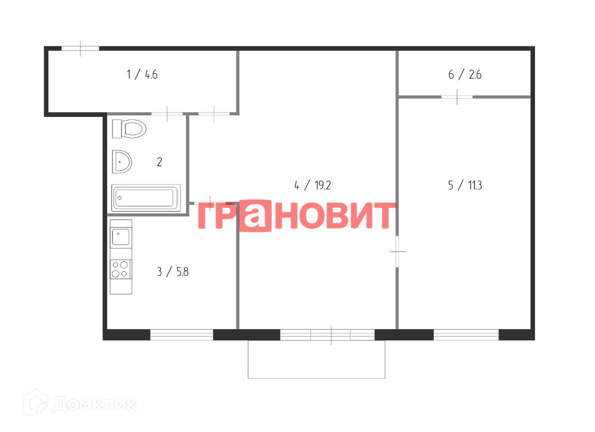 2-комнатная квартира, 46.4 м2, этаж 3 / 5, на продажу в Новосибирске, улица Ольги Жилиной, 88