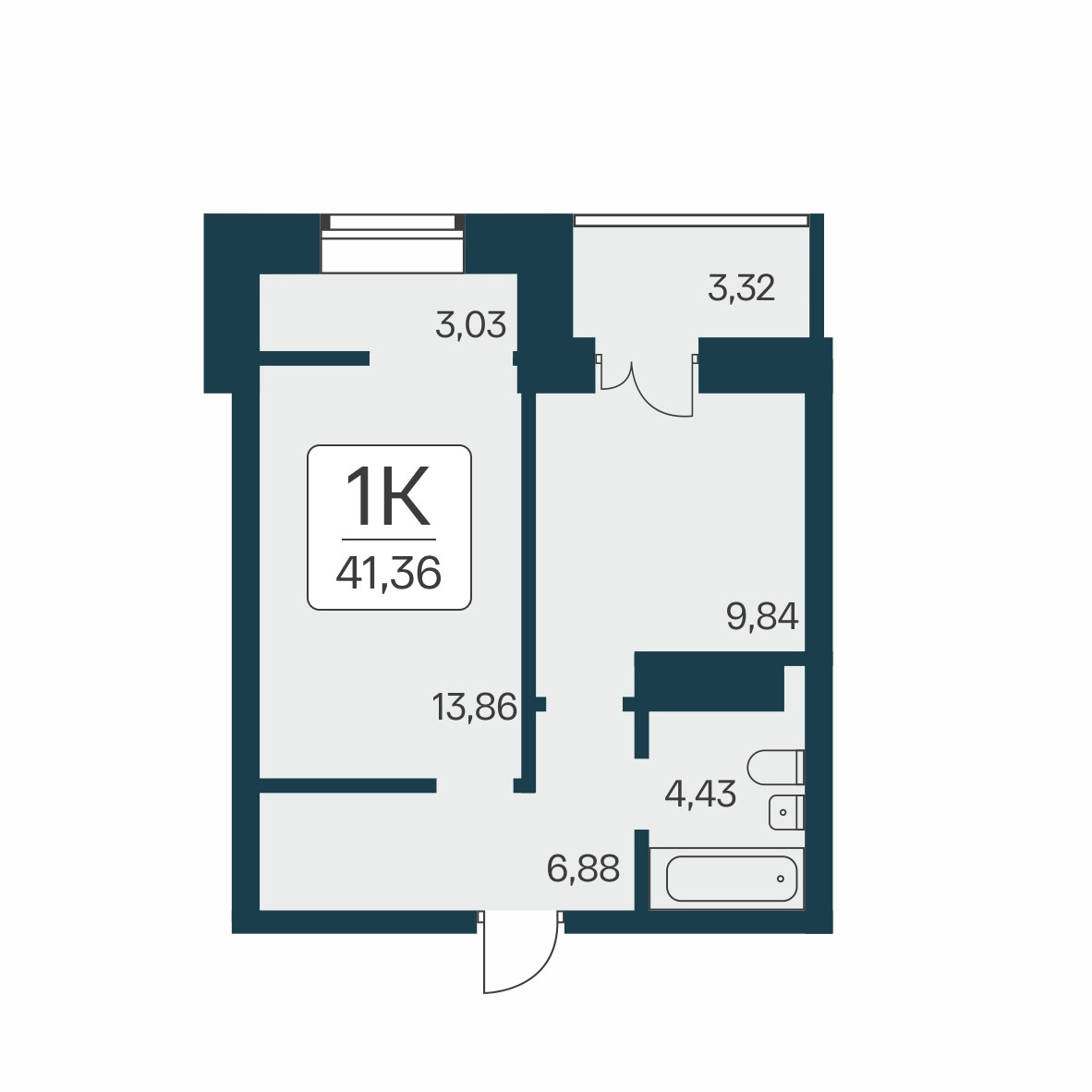 Общая площадь 41.3 м2