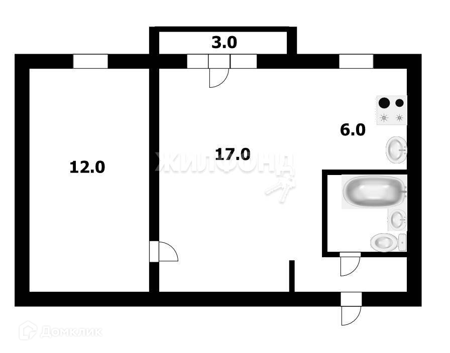 2-комнатная квартира, 41.6 м2, этаж 2 / 5, на продажу в Новосибирске, улица Демьяна Бедного, 56