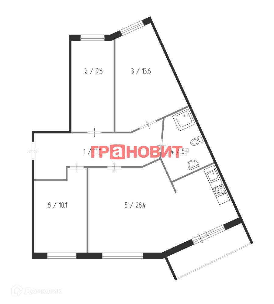 4-комнатная квартира, 82 м2, этаж 12 / 14, на продажу в Новосибирске, улица Федосеева, 2