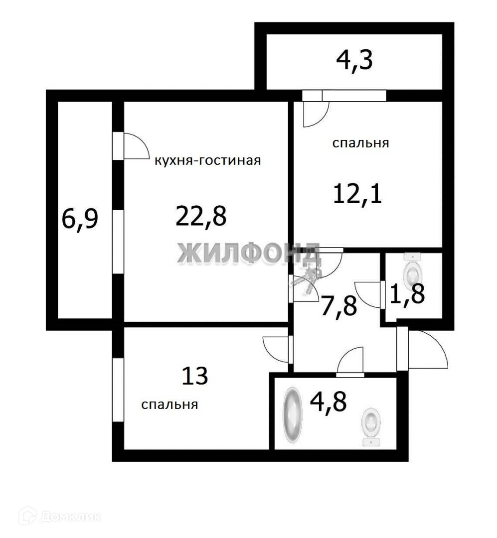 УДОБНАЯ современная ПЛАНИРОВКА: кухня-гостиная 23м2 и две спальни 12 и 13м2.