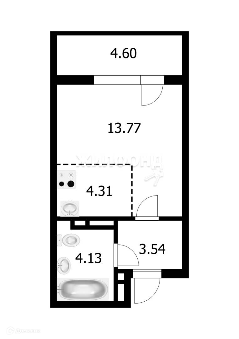 Общая площадь 25.8 м2
