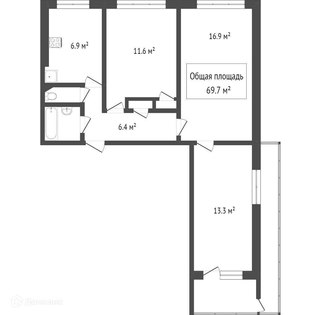 Общая площадь 57.9 м2