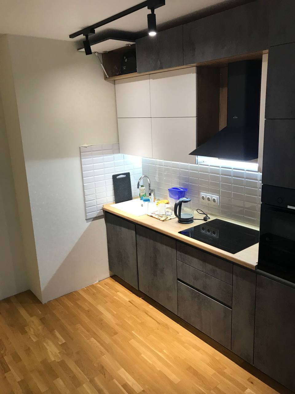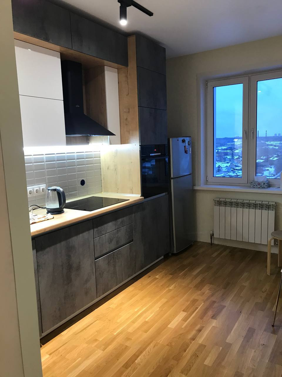 - Квартира в хорошем состоянии: установлены пластиковые окна, кафель в ванне ( остается только повесить зеркало),  натяжные потолки в комнатах, кухонный гарнитур с техникой, все остается новому покупателю. На полу : в ванной - кафель , на кухне - паркетная доска, в комнате - ламинат.