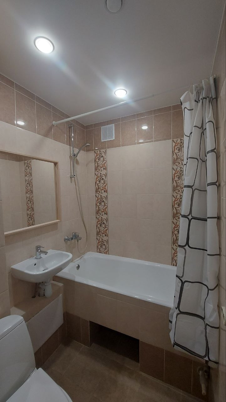- качественный ремонт в ванной комнате со всей необходимой сантехникой и фаянсом;