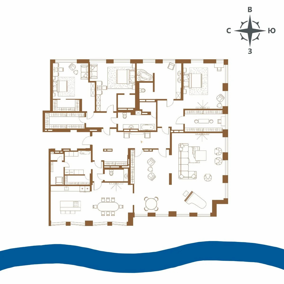 - Жилая площадь 328 м2