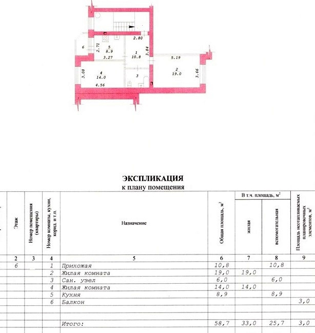 Общая площадь 58 м2
