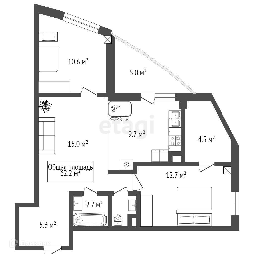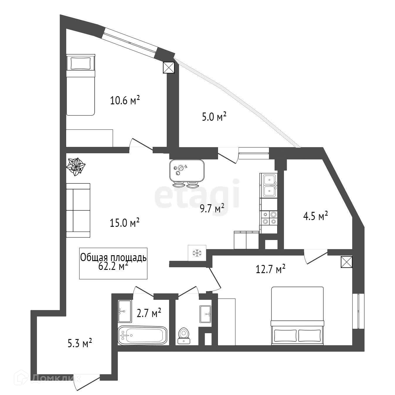 Общая площадь 73 м2