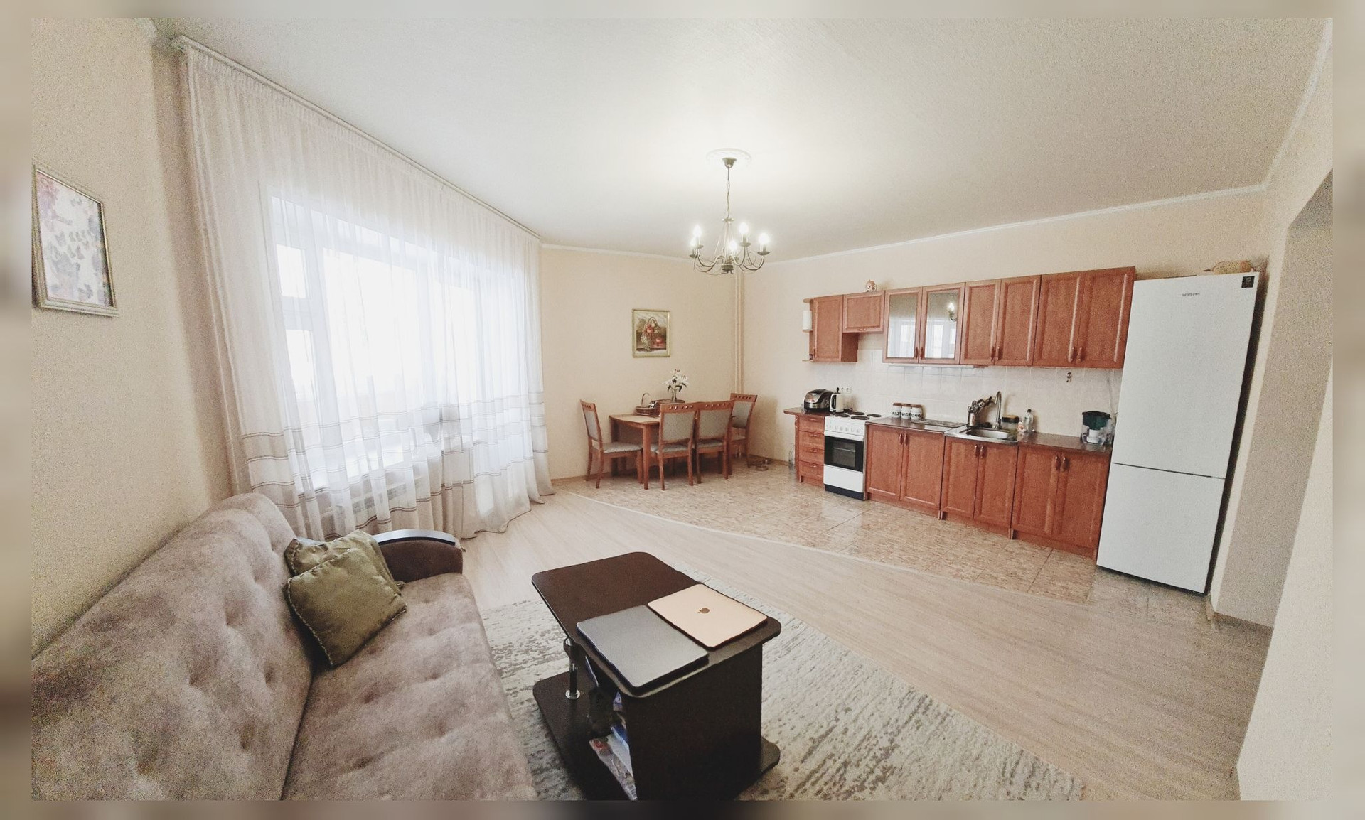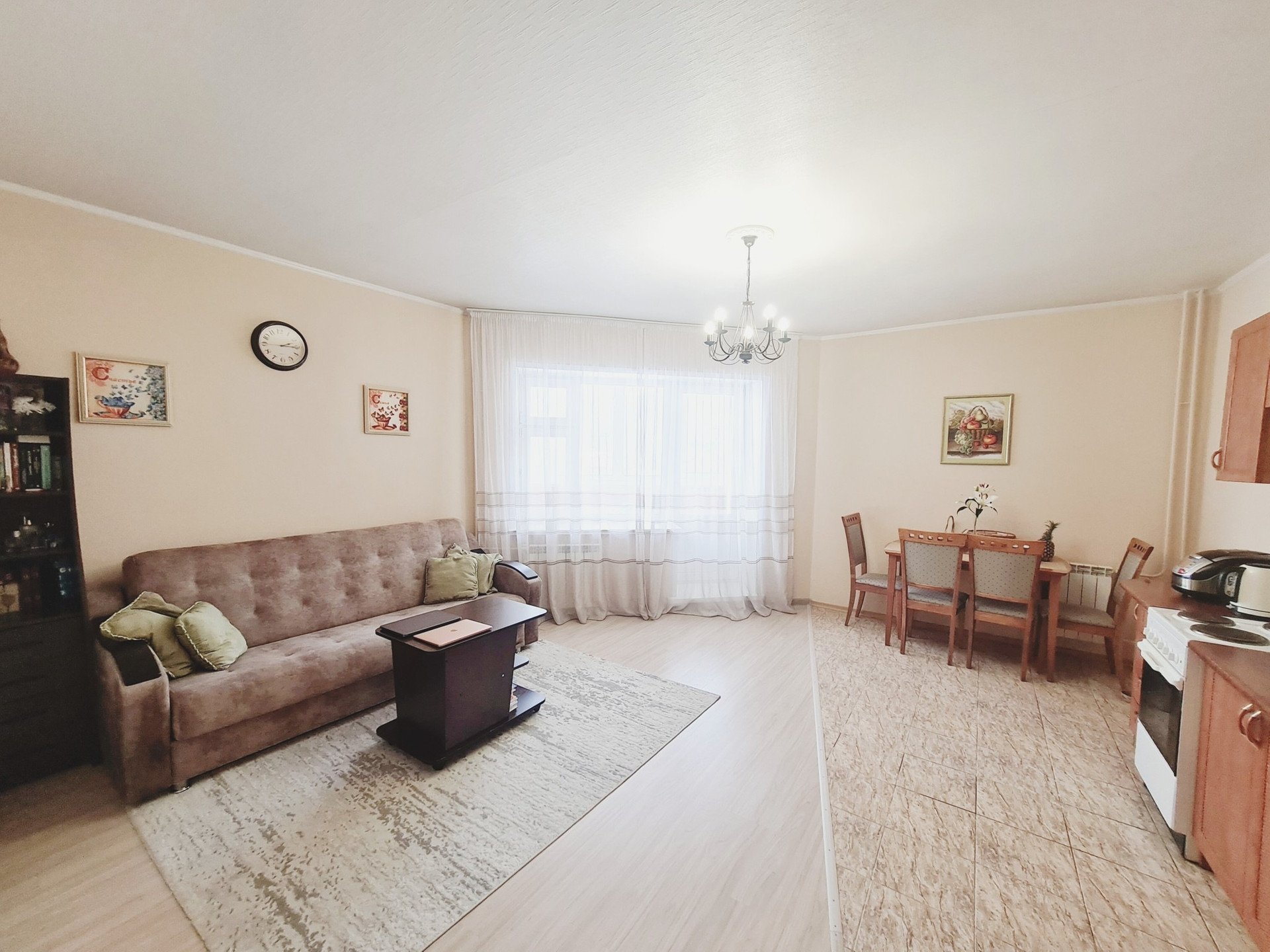 Ремонт в светлых приятных тонах,  на полу постелен ламинат, установлены новые радиаторы, пластиковые окна.
