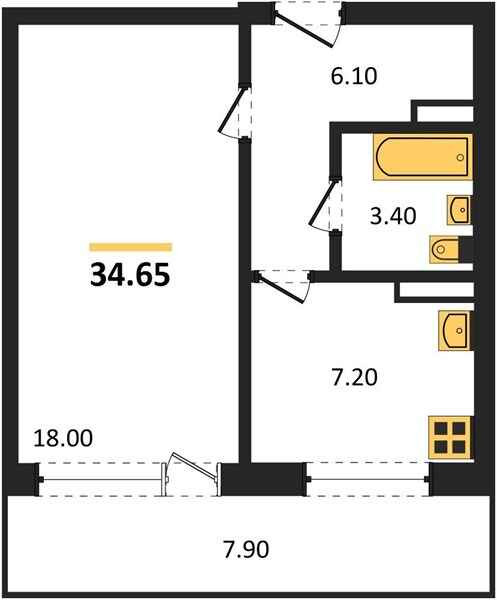 Общая площадь 34.65 м2