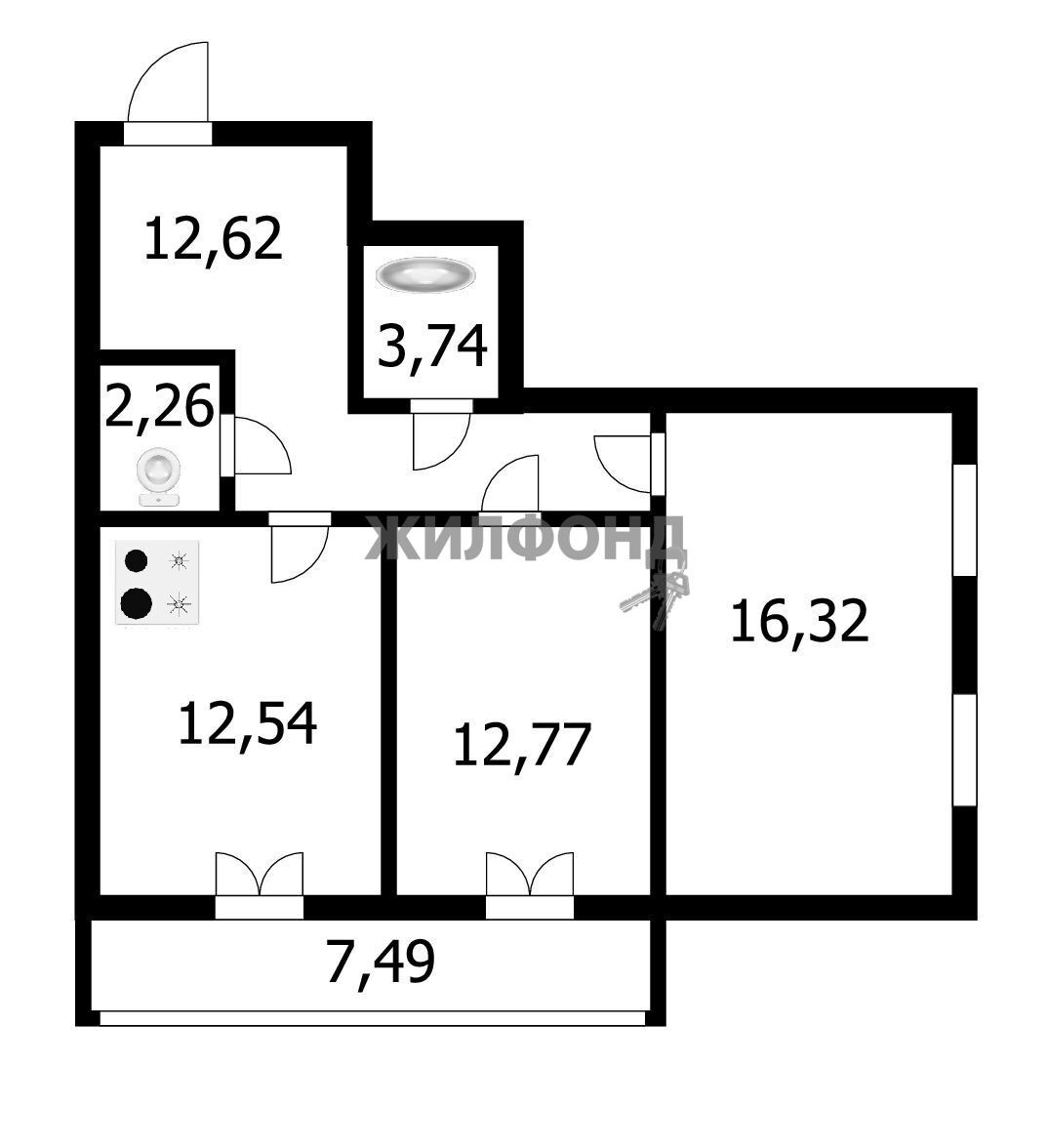 Площадь кухни 12.9 м2