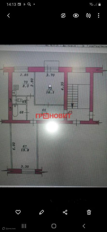 2-комнатная квартира, 57.7 м2, этаж 5 / 5, на продажу в Новосибирске, улица Богдана Хмельницкого, 63