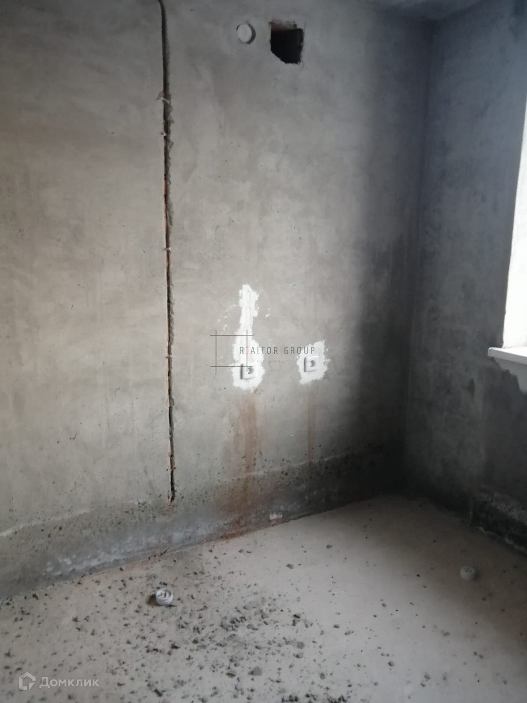 Черновая отделка, розетки и выключатели установлены.