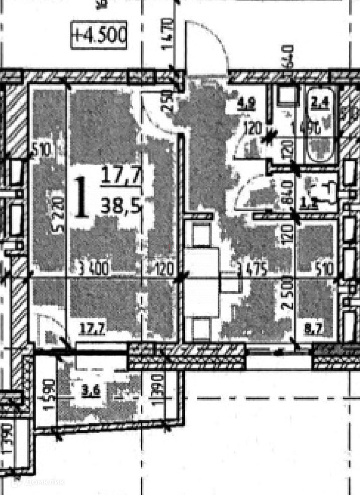 Общая площадь 38.5 м2