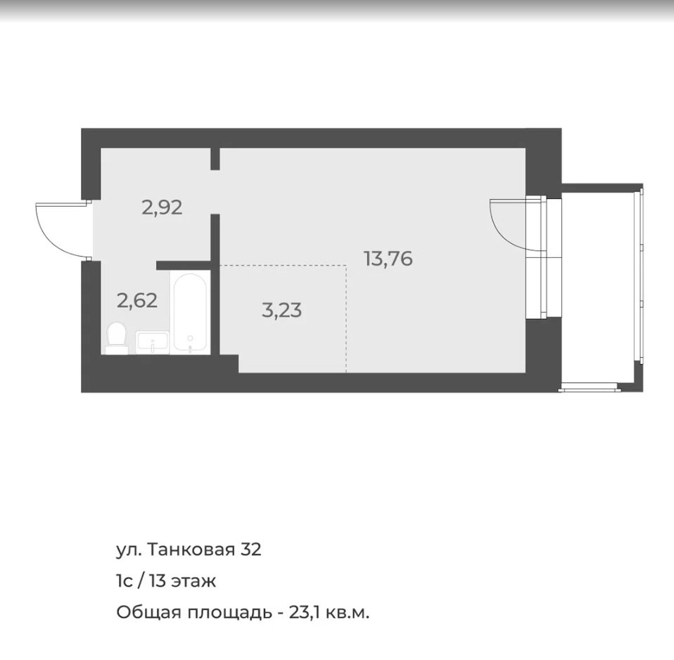 Общая площадь 23.1 м2