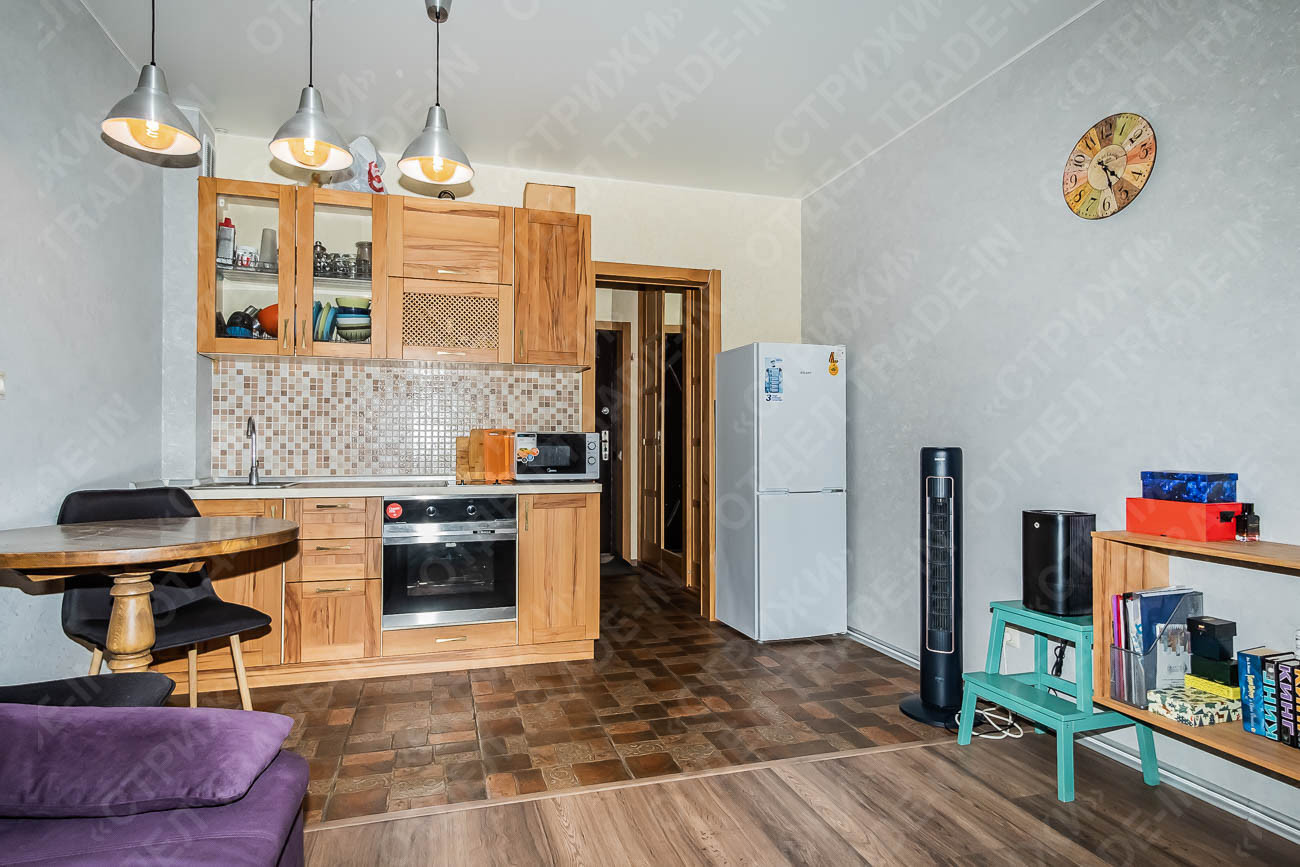 В подарок новым собственникам остается кухонный гарнитур со встроенной техникой, холодильник, микроволновая печь, стиральная машина, полка в ТВ зоне и диван на балконе.