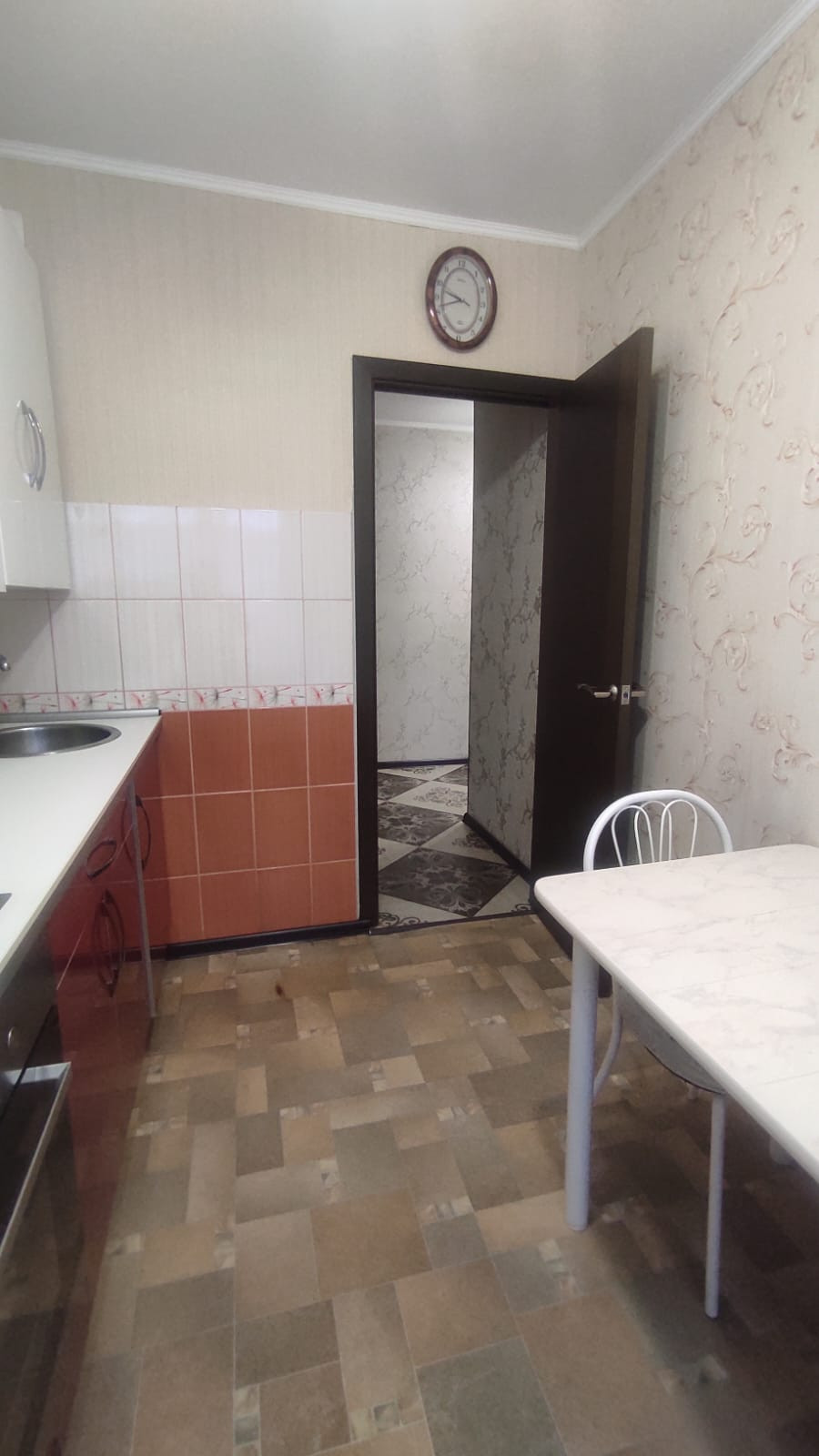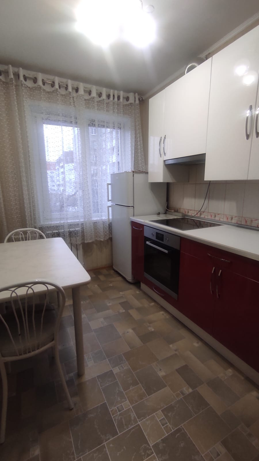 В квартире остается: кухонный гарнитур, духовой шкаф, варочная поверхность, вытяжка,