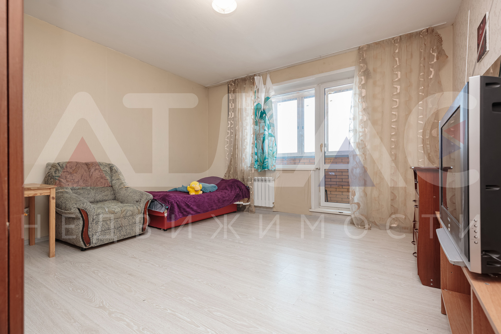 - Просторная спальня с большим окном;