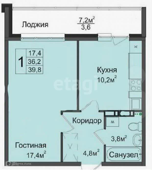 Общая площадь 39 м2
