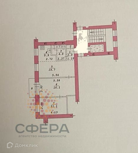 Общая площадь 56 м2