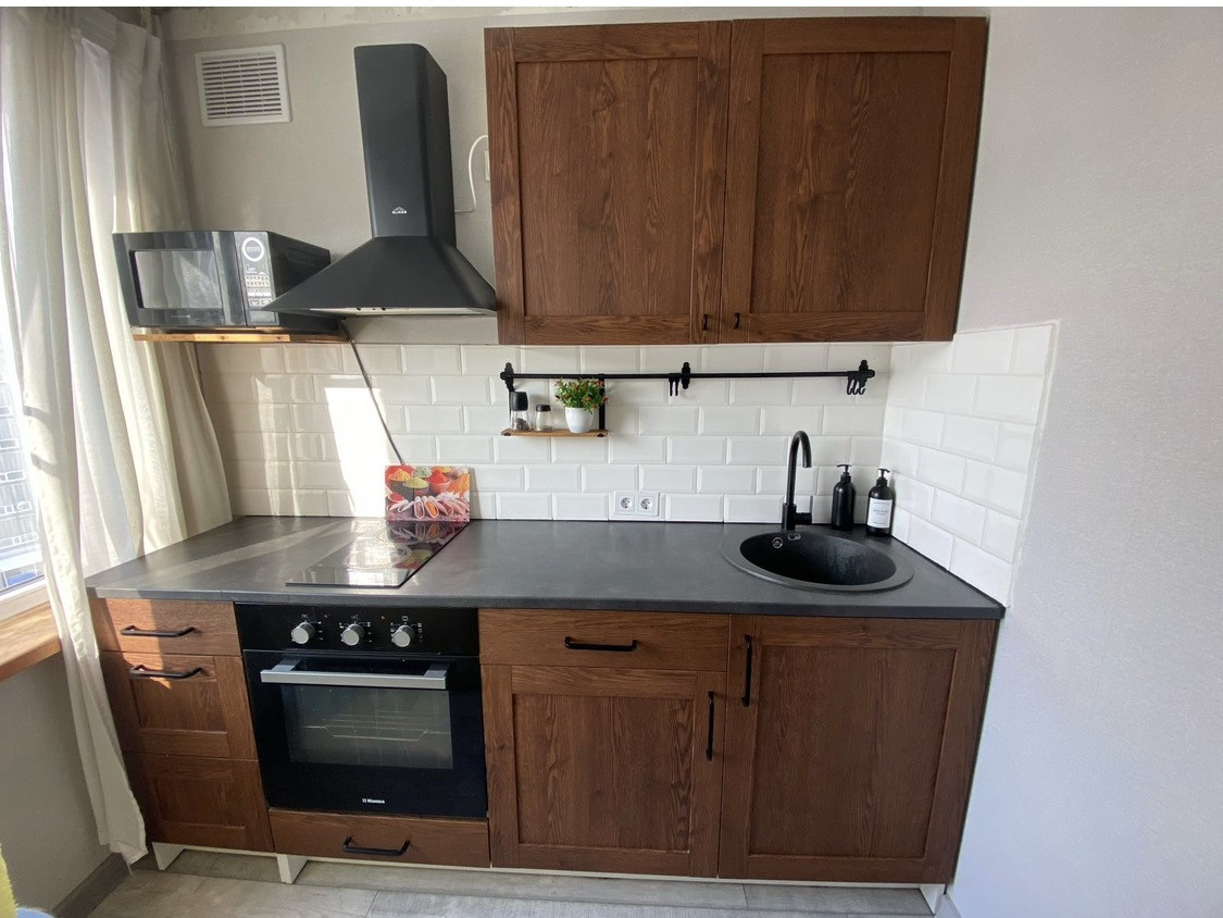 Большая часть мебели остается новому хозяину(кухня Икея, духовой шкаф, варочная панель и т.д.)