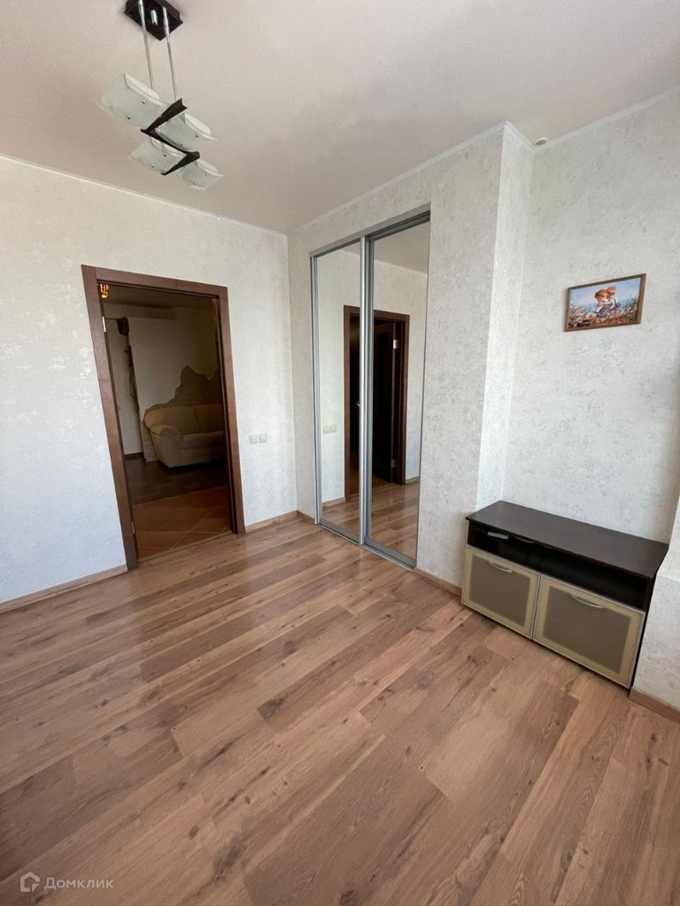 В комнате: кровать двухспальная без матраса, шкаф с зеркалом
