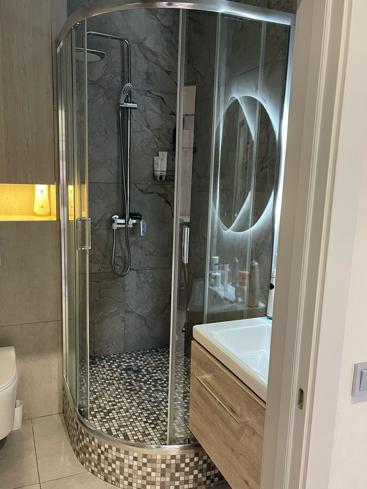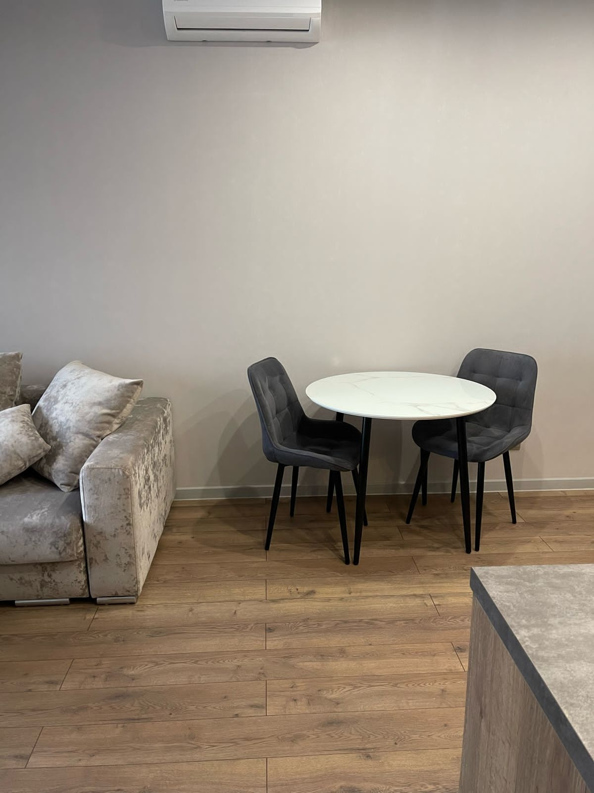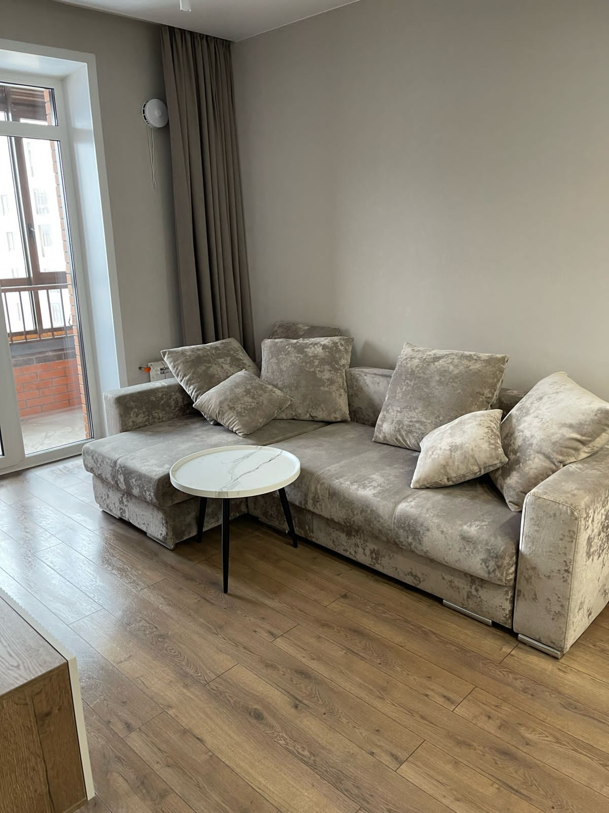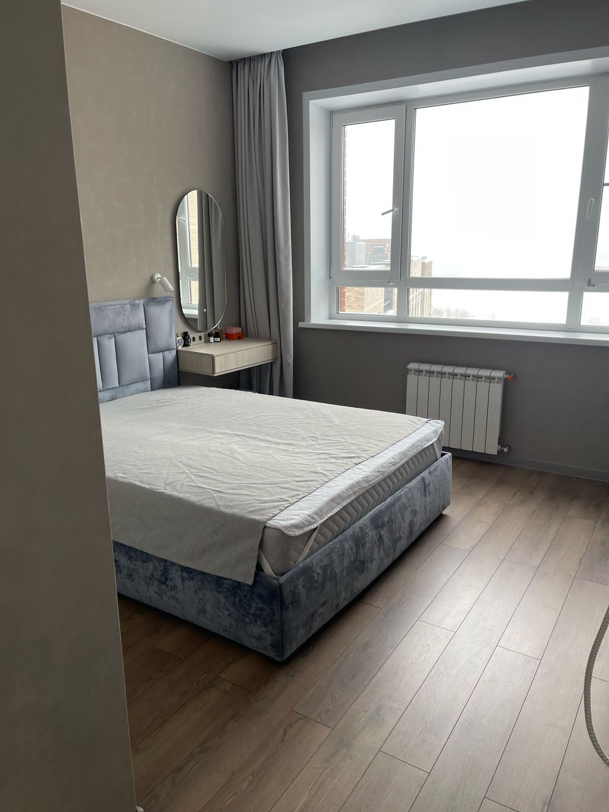 Установлена кухня, встроеная техника, теплый пол, многоуровневое освещение, диван фабрика 8 марта, кровать делали на заказ, качественный матрас премиум сегмент.
