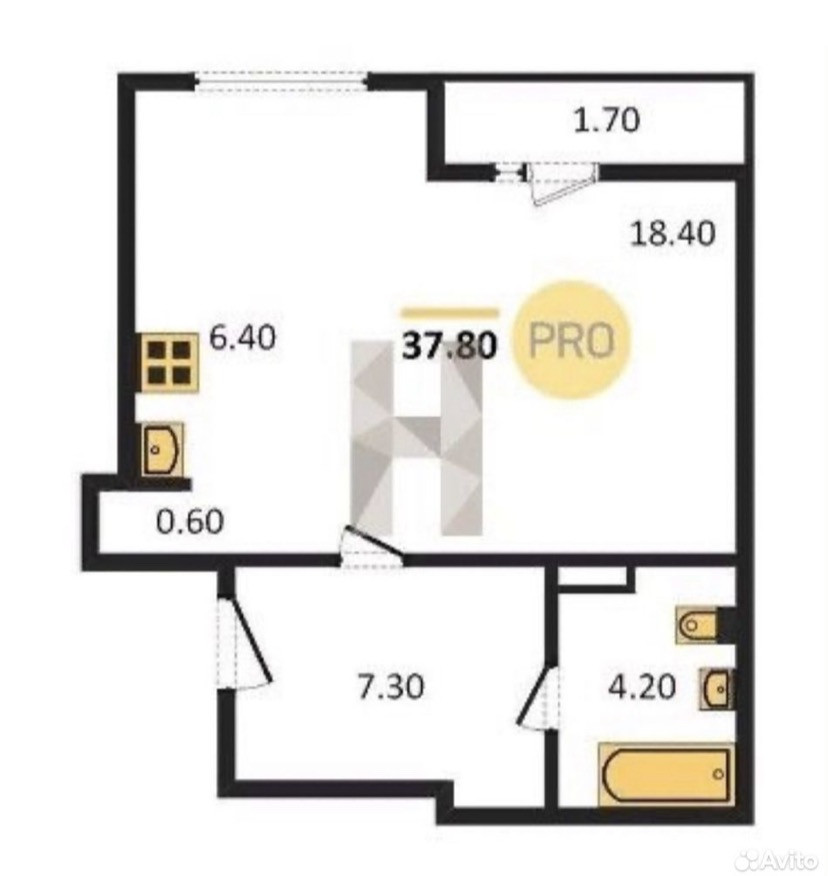 Общая площадь 37.8 м2
