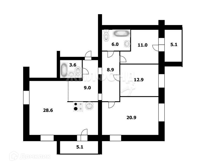3-комнатная квартира, 100.9 м2, этаж 4 / 10, на продажу в Новосибирске, улица Костычева, 1