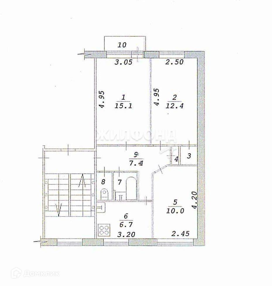 3-комнатная квартира, 57.9 м2, этаж 4 / 5, на продажу в Новосибирске, Чемская улица, 6