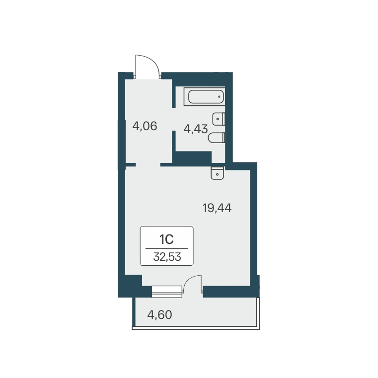 Общая площадь 32.53 м2