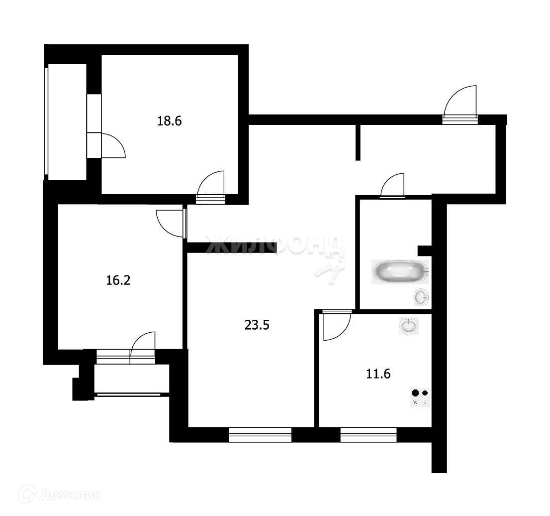 Жилая площадь 58.3 м2
