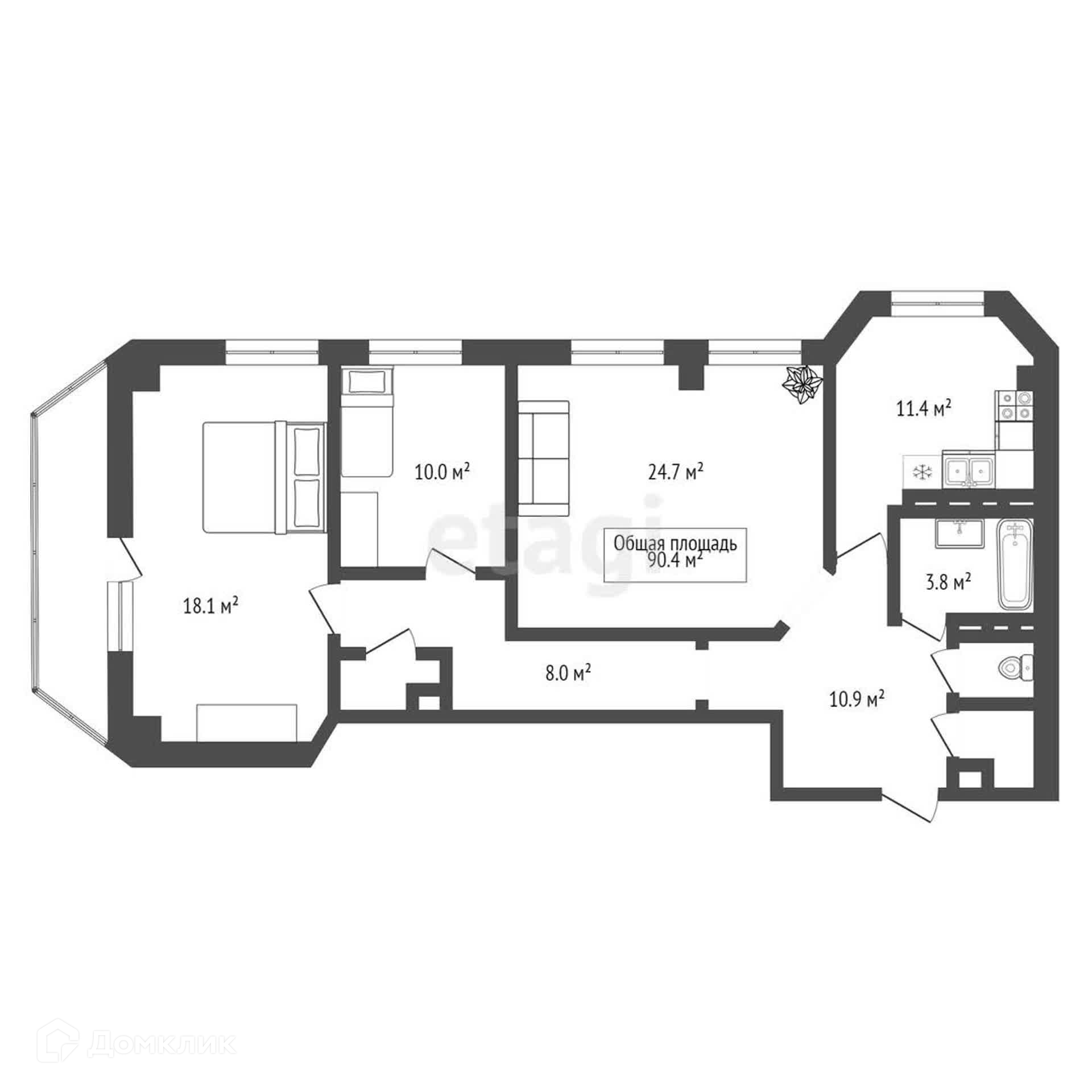 Общая площадь 90.4 м2