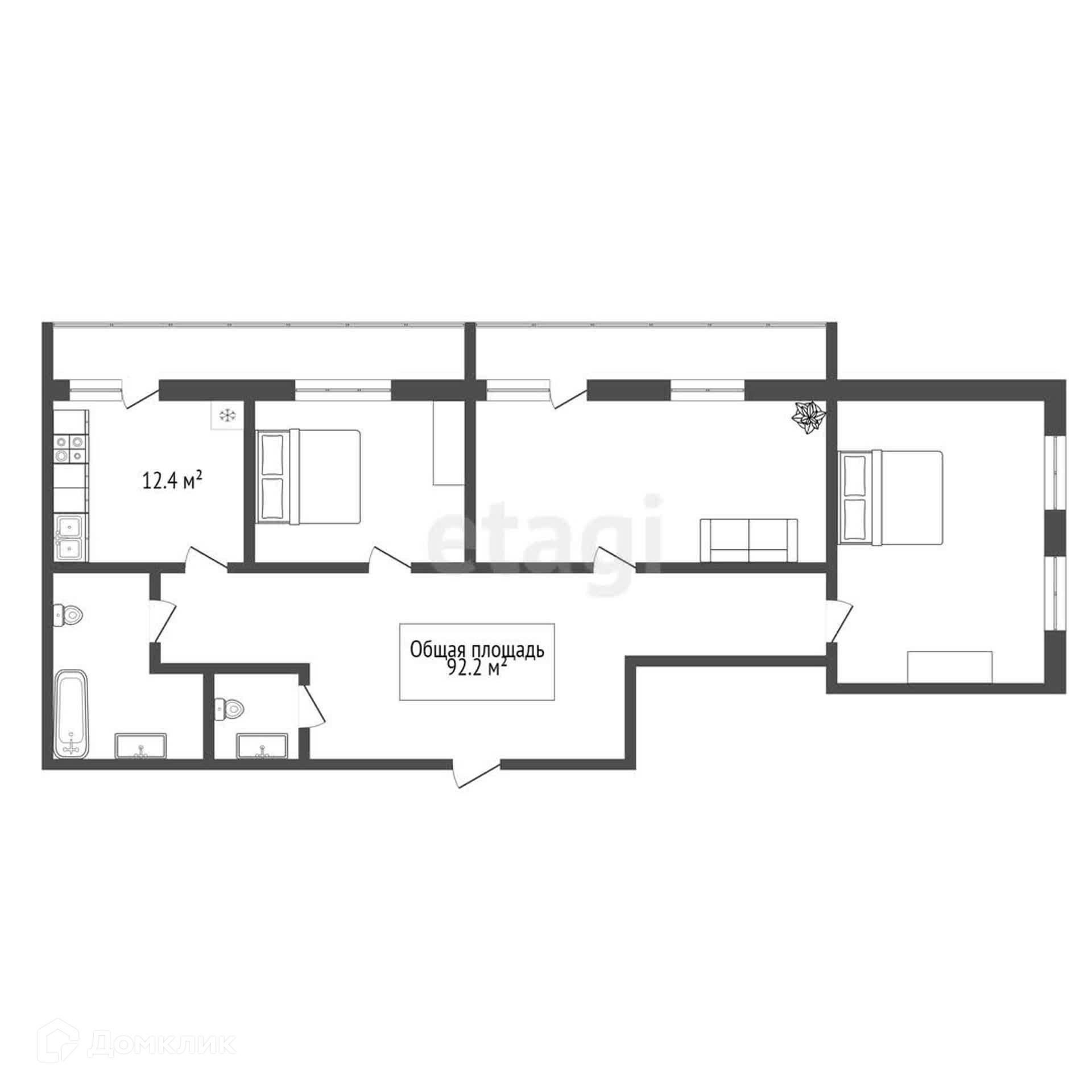 Общая площадь 92.2 м2