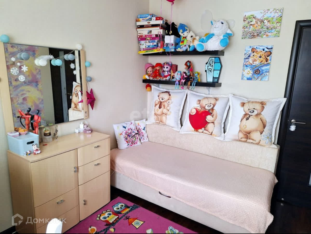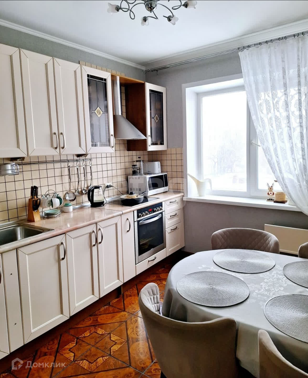 Кухня и шкаф купе в коридоре остается новым хозяевам. Развитая инфраструктура: 3 школы, 3 детских сада, гипермаркет Лента, поликлиника, стоматология, аптеки, банк, почта, социальная ярмарка, спортивные учреждения.