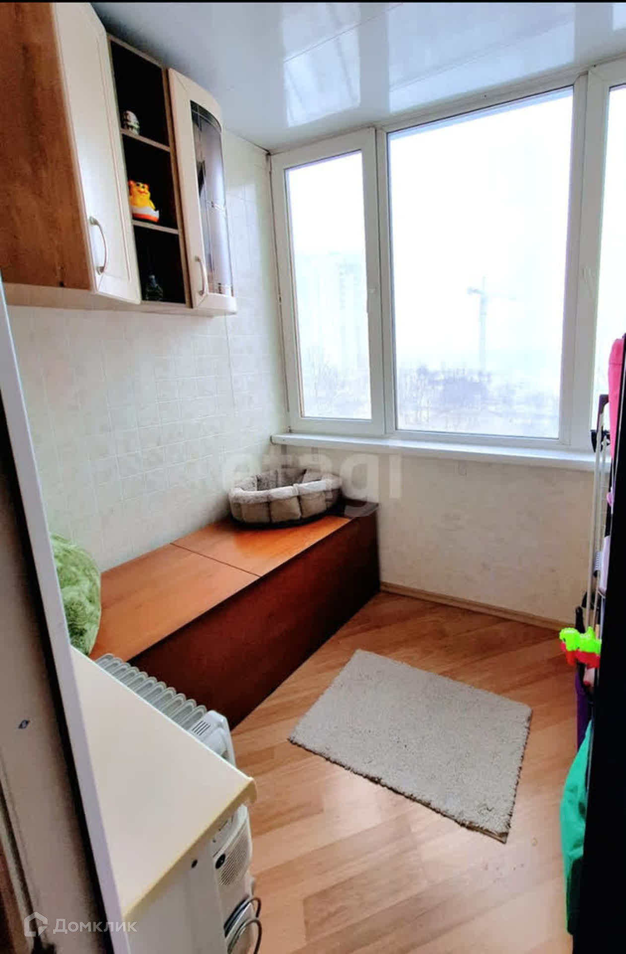 Застекленная, просторная лоджия с видом на реку Обь: дополнительное пространство для отдыха и приятных моментов.