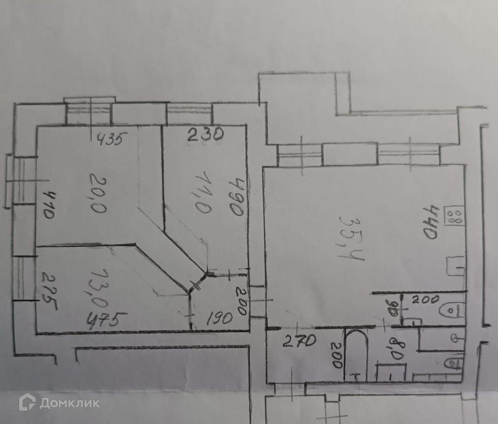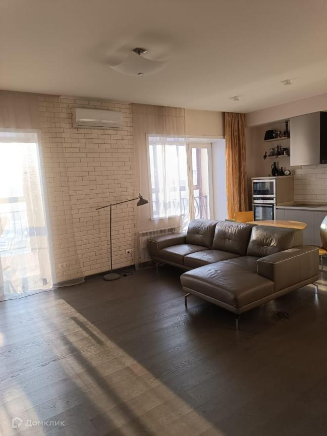 В квартире осуществлена перепланировка, благодаря которой данный объект состоит из трёх полноценных комнат и большой кухни-гостиной 35 кв.м.  Большинство окон – в пол. Имеется большая лоджия 12 кв.м. с двумя выходами из гостиной. Отличная звукоизоляция.