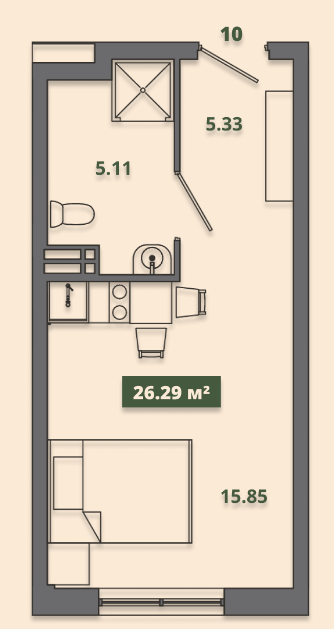 Общая площадь 26.2 м2