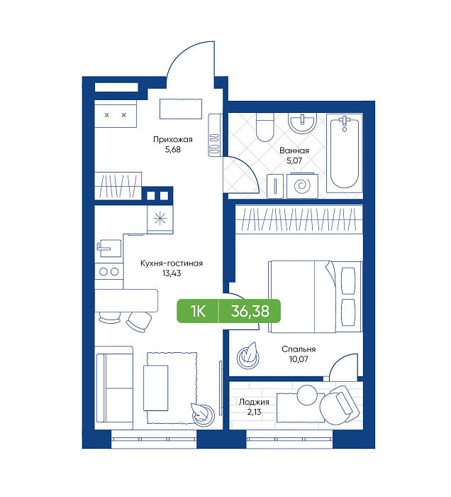 Общая площадь 36.38 м2