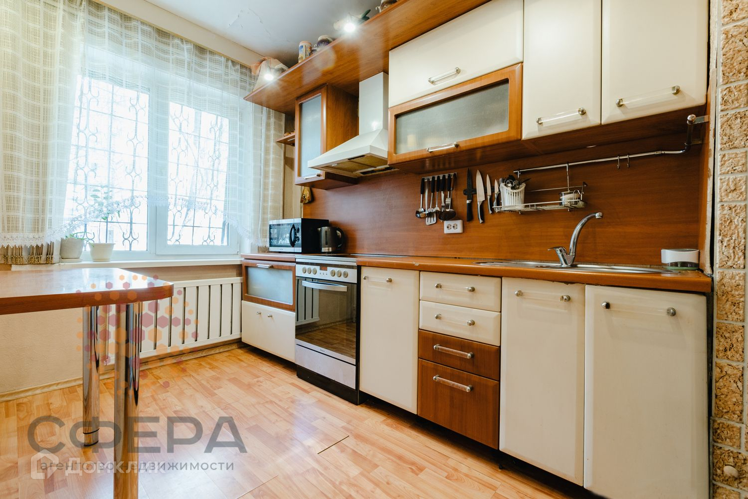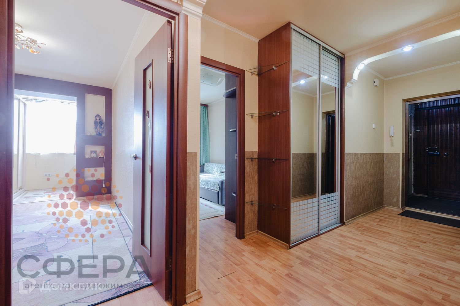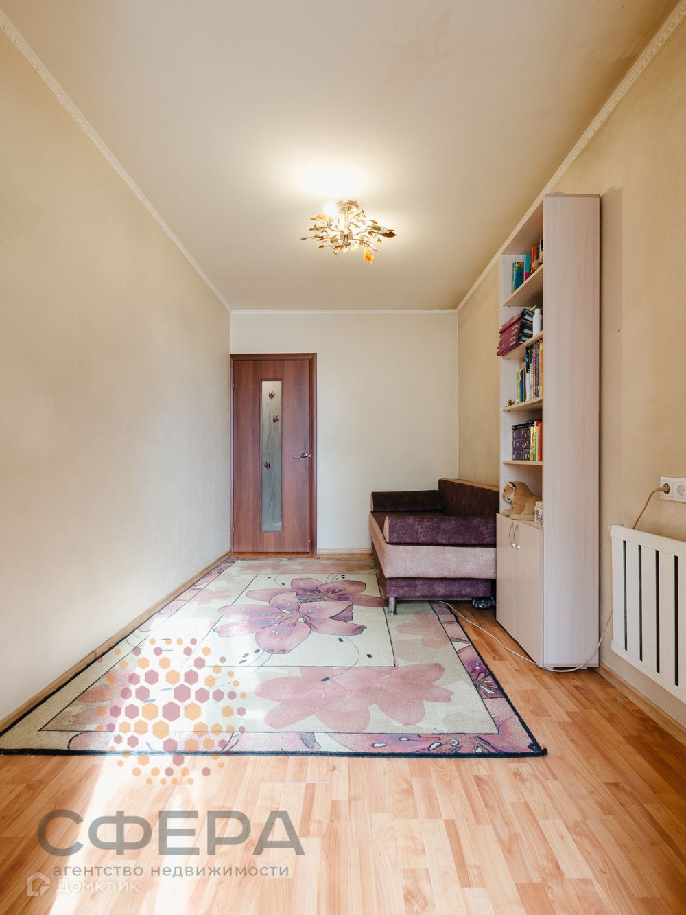 Потолки и стены выровнены, на полу ламинат. Заменены радиаторы отопления. Покупателю остаётся кухонный гарнитур и шкаф-купе в прихожей.