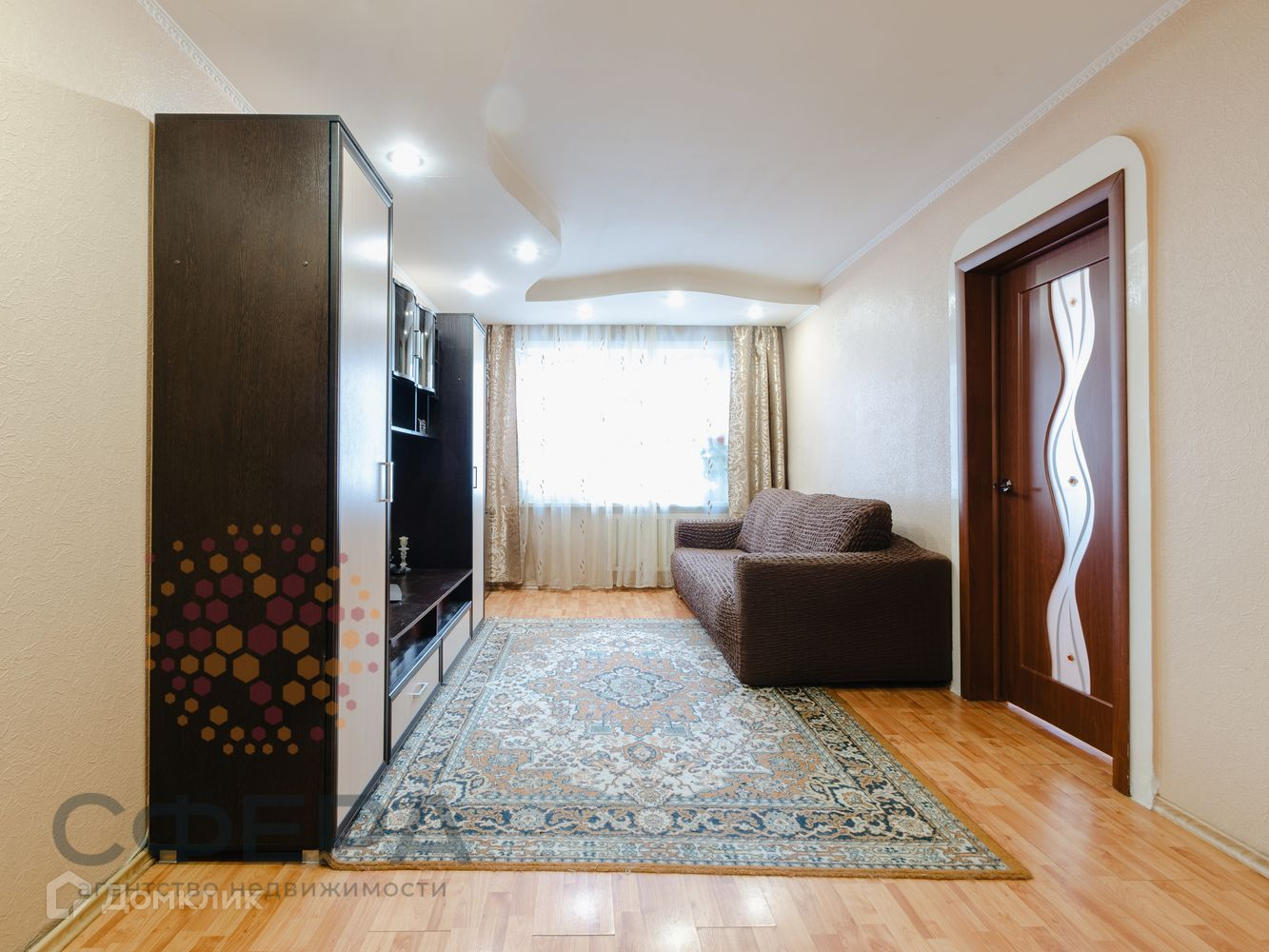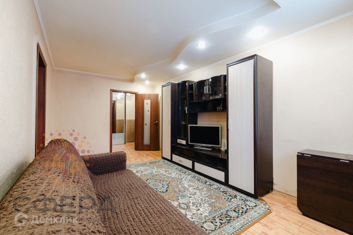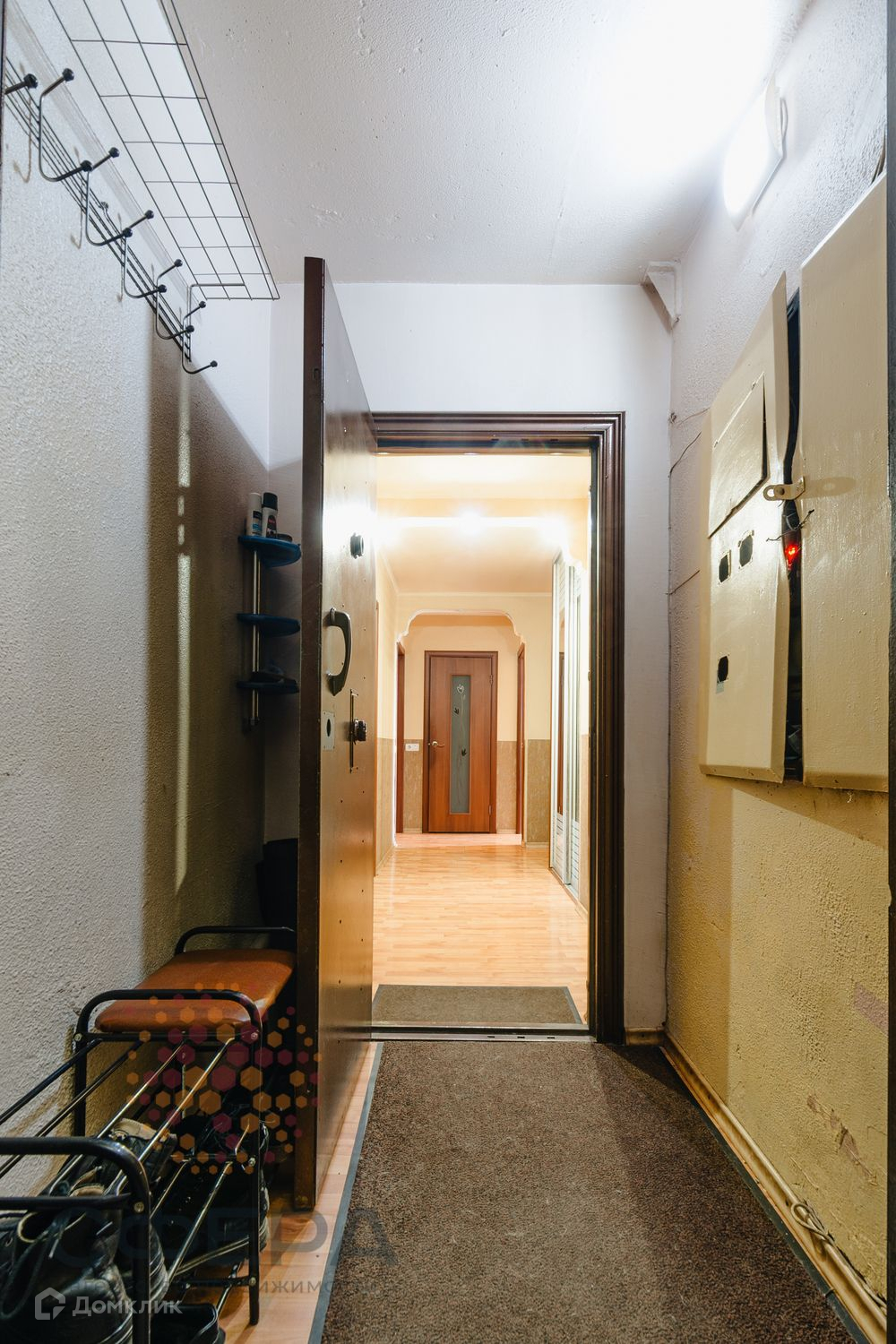 Потолки и стены выровнены, на полу ламинат. Заменены радиаторы отопления. Покупателю остаётся кухонный гарнитур и шкаф-купе в прихожей.