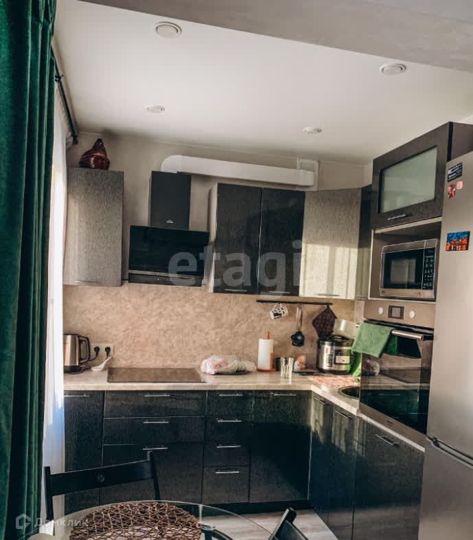 Кухонный гарнитур с вытяжкой и техникой останется в подарок новым хозяевам.