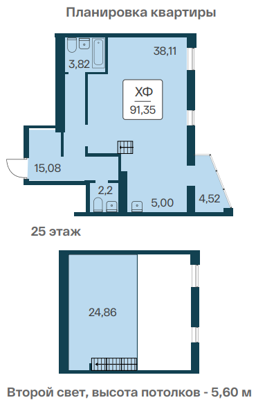 Хотите не типовую планировкe, а так чтобы не как у всех и с размахом, тогда Вам нужен ХАЙФЛЭТ- пентхаус со вторым светом. Высота потолков 5,6м !  Это ЕДИНСТВЕННАЯ КВАРТИРА в сданном доме!