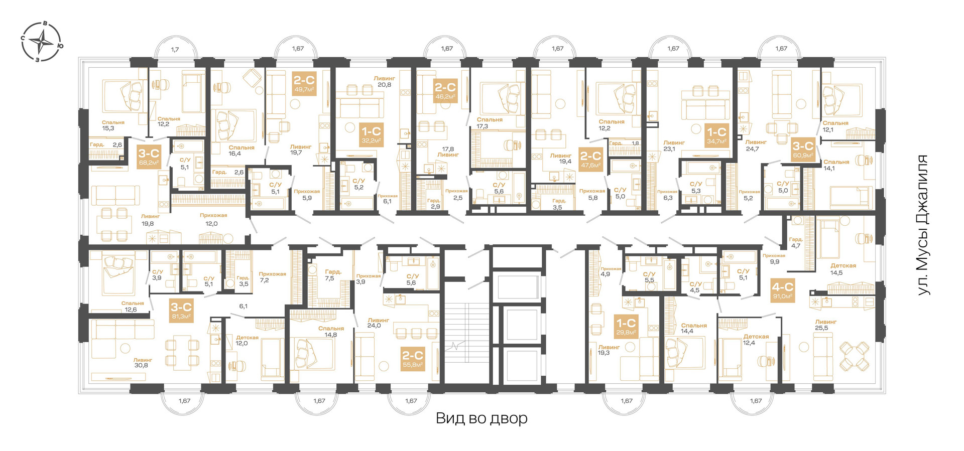 Общая площадь 68.24 м2