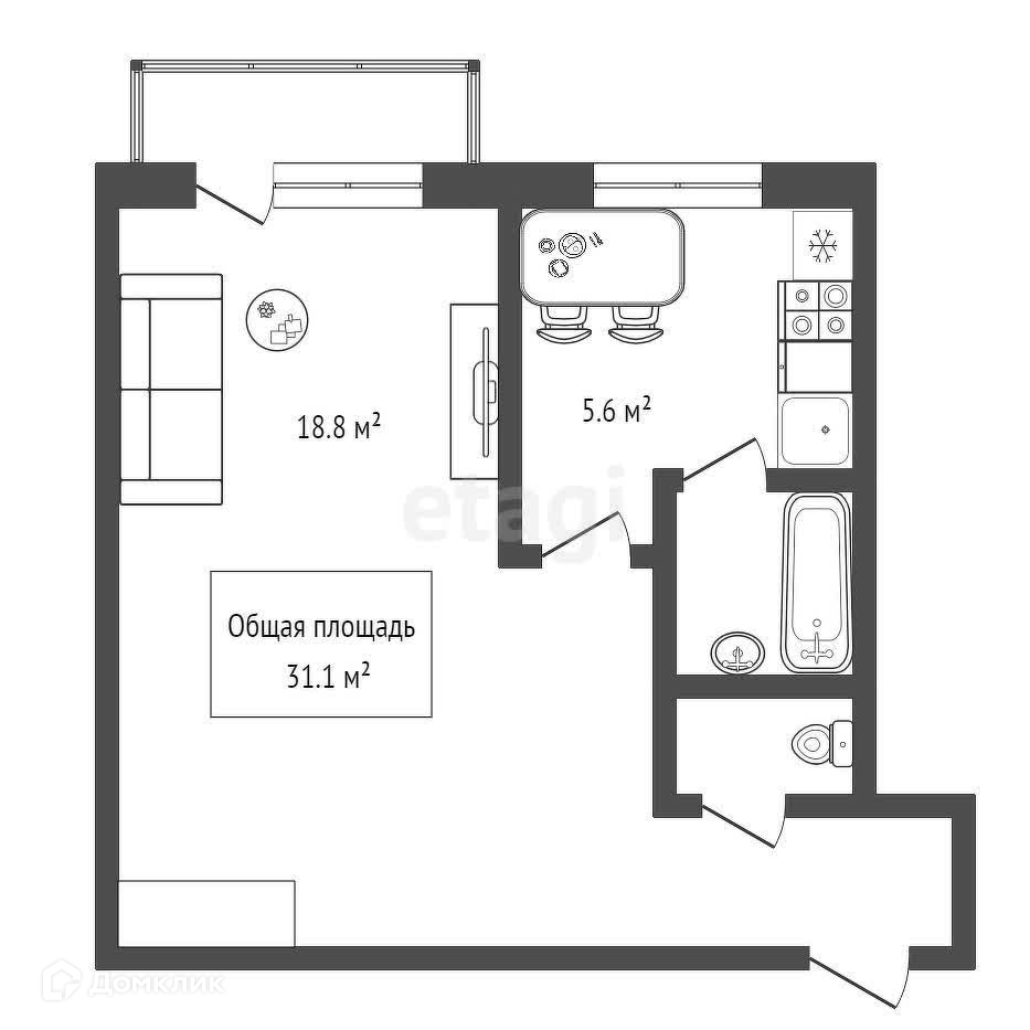 Общая площадь 31.1 м2