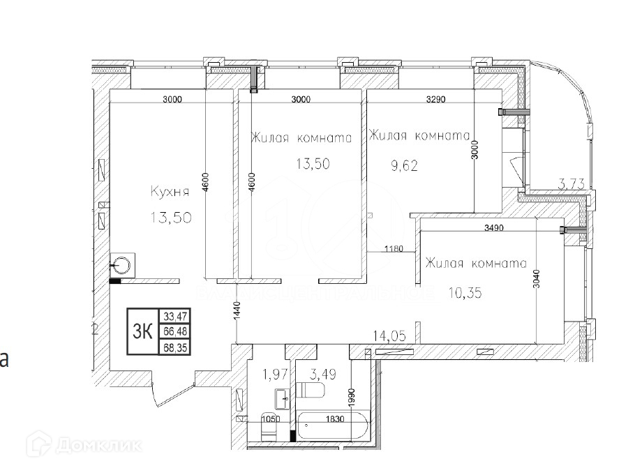 Высота потолков 3 м