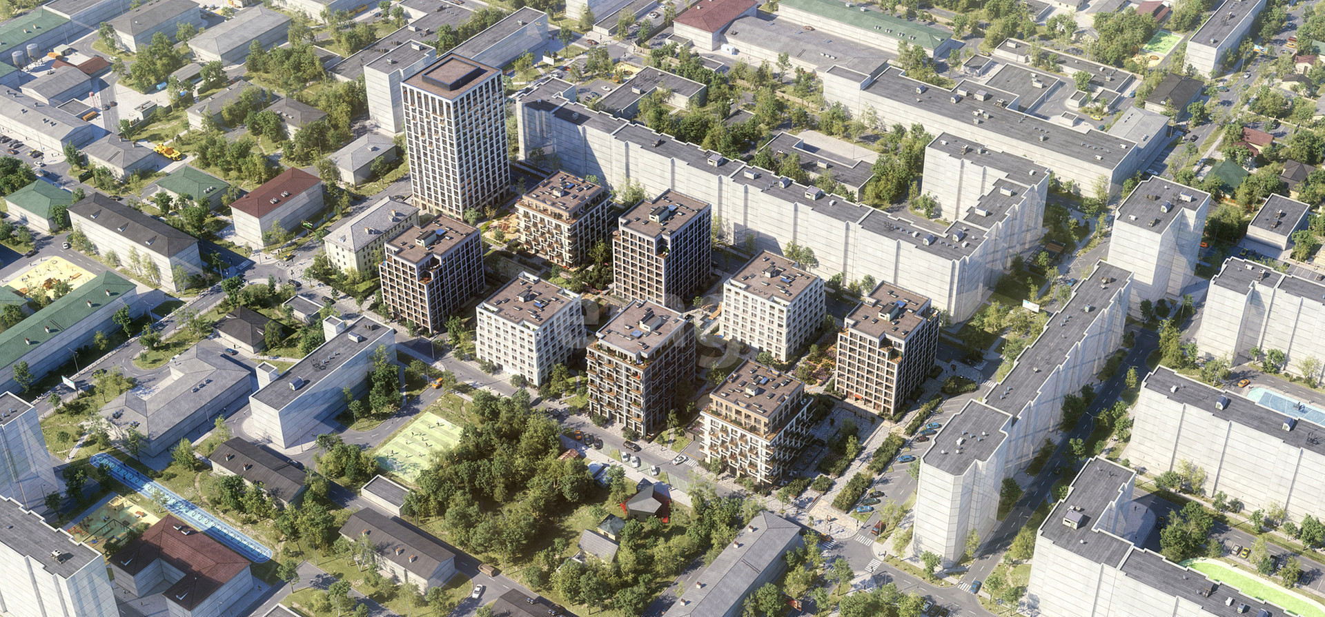 Квартал расположен на пересечении центральных улиц Декабристов и Никитина. До станции метро «Речной вокзал» — около 20 минут пешком, до улицы Кирова — 5 минут пешком. Невысокая застройка из восьми урбан-вилл с одной доминантой в виде башни окружена парковым пространством. Рядом с кварталом находится школа, университет, детские сады, магазины и отделения банков, остановки общественного транспорта.