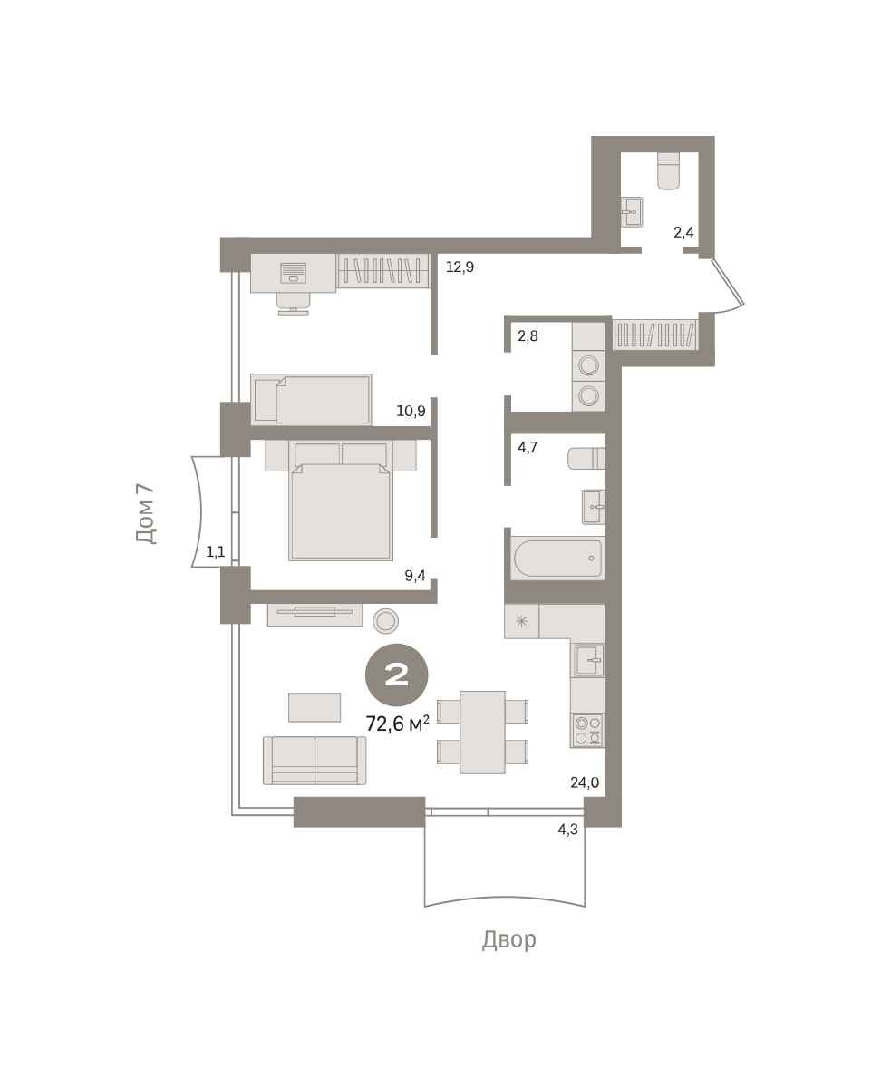 Общая площадь 72.6 м2